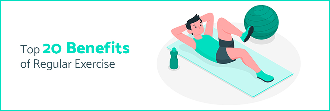 EXERCISE BENEFITS: TOP 20 HEALTH BENEFITS OF EXERCISE Reduces body fat Increases lifespan Oxygenates body Strengthens muscles Manages chronic pain Wards off viruses Reduces diabetes risk Strengthens heart Clears arteries Boosts mood Maintains mobility Improves memory Improves coordination Strengthens bones Improves complexion Detoxifies body Decreases stress Boosts immune system Lower blood pressure Reduces cancer risk
